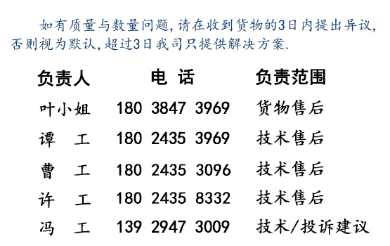 3 產(chǎn)品保修時間內(nèi),返修品返回包裝包好,以免發(fā)現(xiàn)附加損壞,若發(fā)生由發(fā)貨方負責。