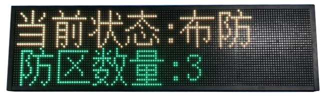 功能描述:1.LED電子屏 F3.75 雙色顯示,豪華大氣,直觀,適合所有場(chǎng)所。2.兩行字體顯示,可以顯示在線防區(qū)數(shù)量,公司LOGO 當(dāng)前狀態(tài),報(bào)警防區(qū)3.安裝方式:掛裝......