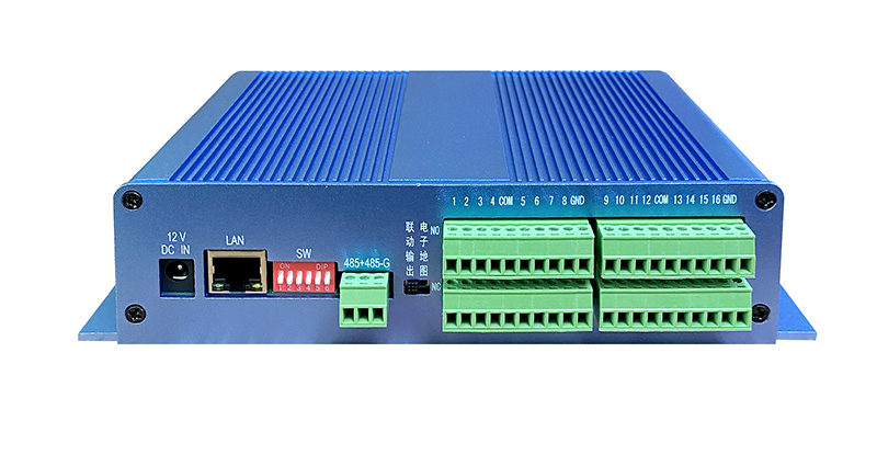 16路聯(lián)動設備 通訊方式:RS485/網絡 設備尺寸:240*121*49mm 設備供電:DC12V 設備功率:4W 端口說明: NC: 常閉開關量信號端口,用于接常閉型報警輸入設備的一端。