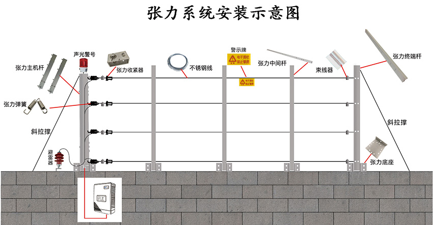 現(xiàn)在來說下張力電子圍欄,前面也說了張力圍欄和脈沖圍欄最大的區(qū)別就是張力圍欄不具備有高壓脈沖電擊功能,報警和阻擋同樣具備了。張力圍欄的報警方式是當(dāng)前端的圍欄的拉力值發(fā)生了改變就會產(chǎn)生報警信號。由于張力圍欄是一種物理性的報警方式,所以張力圍欄的每個的防區(qū)控制長度就相對較短一般在40米以內(nèi)為一個防區(qū)。由于防區(qū)控制長度較短,在同周長的項(xiàng)目上整體的造價成本相比脈沖圍欄要高一些。