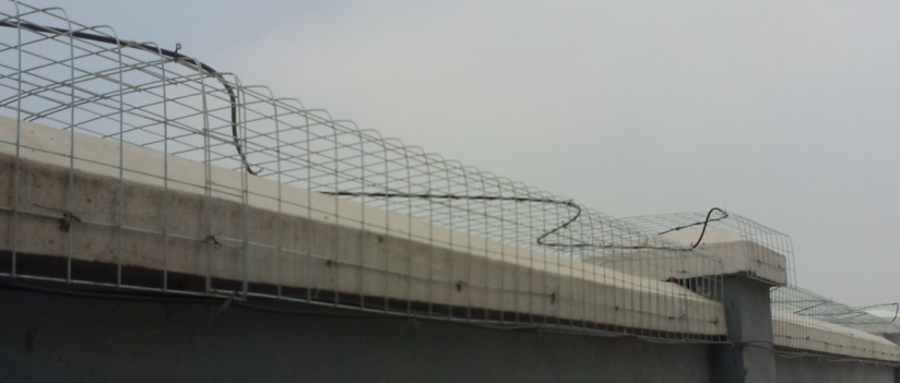 u 墻頂鋪設(shè)噴塑鋼絲網(wǎng)??筛鶕?jù)墻頂實際情況做適當(dāng)?shù)脑煨停M量做到美觀。