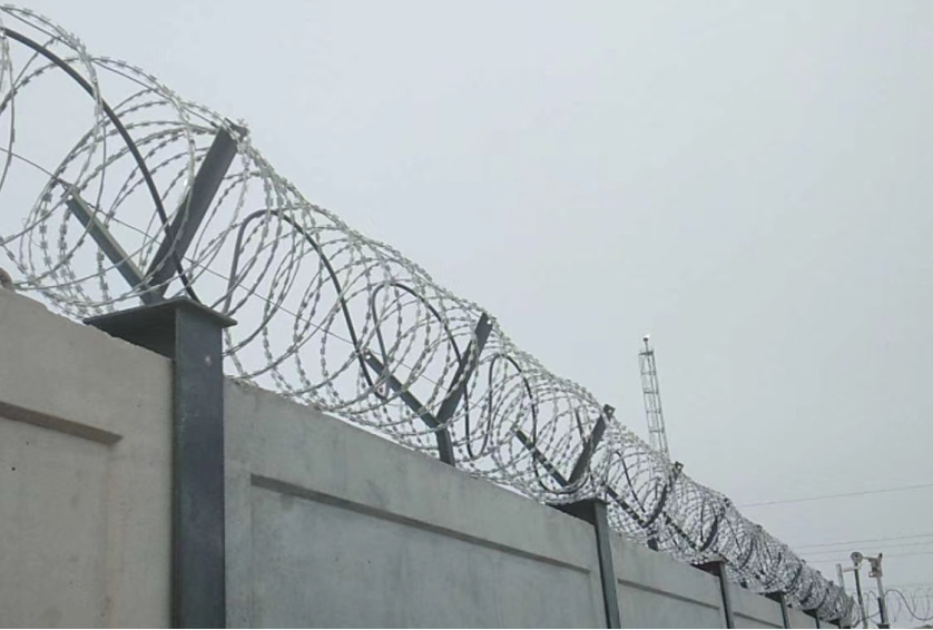 振動光纜在墻頂?shù)氖┕し绞?物防與技防雙重作用,防止攀爬、翻越、跳躍)